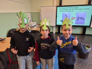 Am Dienstag, 19. September 2023 nahm die Klasse 3a am World-Clean-Up Day teil. Unter dem Motto „Die Elefantenklasse räumt auf!“ erkundete die Schüler*innen das Schulgelände und umliegende Wege, um die Natur vom Müll zu befreien. Hierbei waren sie mit Greifzangen, Handschuhen und Müllsäcken ausgestattet. Im Anschluss sortieren die Kinder den gefundenen Müll, um ihn den passenden Müllsorten zuzuordnen und im Anschluss wegzuwerfen. Hierbei wurde viel darüber gestaunt, was alles gefunden wurde. Das kurioseste Fundstück war einstimmig eine alte Socke.