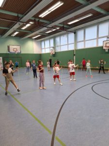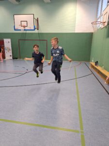 Während des Workshops wurden den Schüler*innen der Klassen 4 die Grundtechniken des Rope Skippings vermittelt. Herr Öysal motivierte die Kids viel für ihre Bewegungsfähigkeit, ihre Koordination und Ausdauer zu tun. Zum Abschluss gab es eine kleine Aufführung, bei der die Schüler*innen ihr erlerntes Können Mitschüler*innen vorführten. Im Sportunterricht werden wir alles Gelernte vertiefen und weiterspringen.