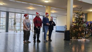 Bevor es in die Weihnachtsferien ging, haben wir gemeinsam das Kalenderjahr ausklingen lassen. In unserer Schulhalle versammelten sich alle Schüler*innen, viele Eltern und natürlich auch alle Lehrer*innen und Mitarbeiter*innen. Die Klassen zeigten ein vielfältiges, buntes winterliches und weihnachtliches Programm, das alle begeisterte. Außerdem wurden adventliche Lieder gesungen. Ein schöner Abschluss des Kalenderjahres und Einstieg in die Ferien! Danke an alle Beteiligten!